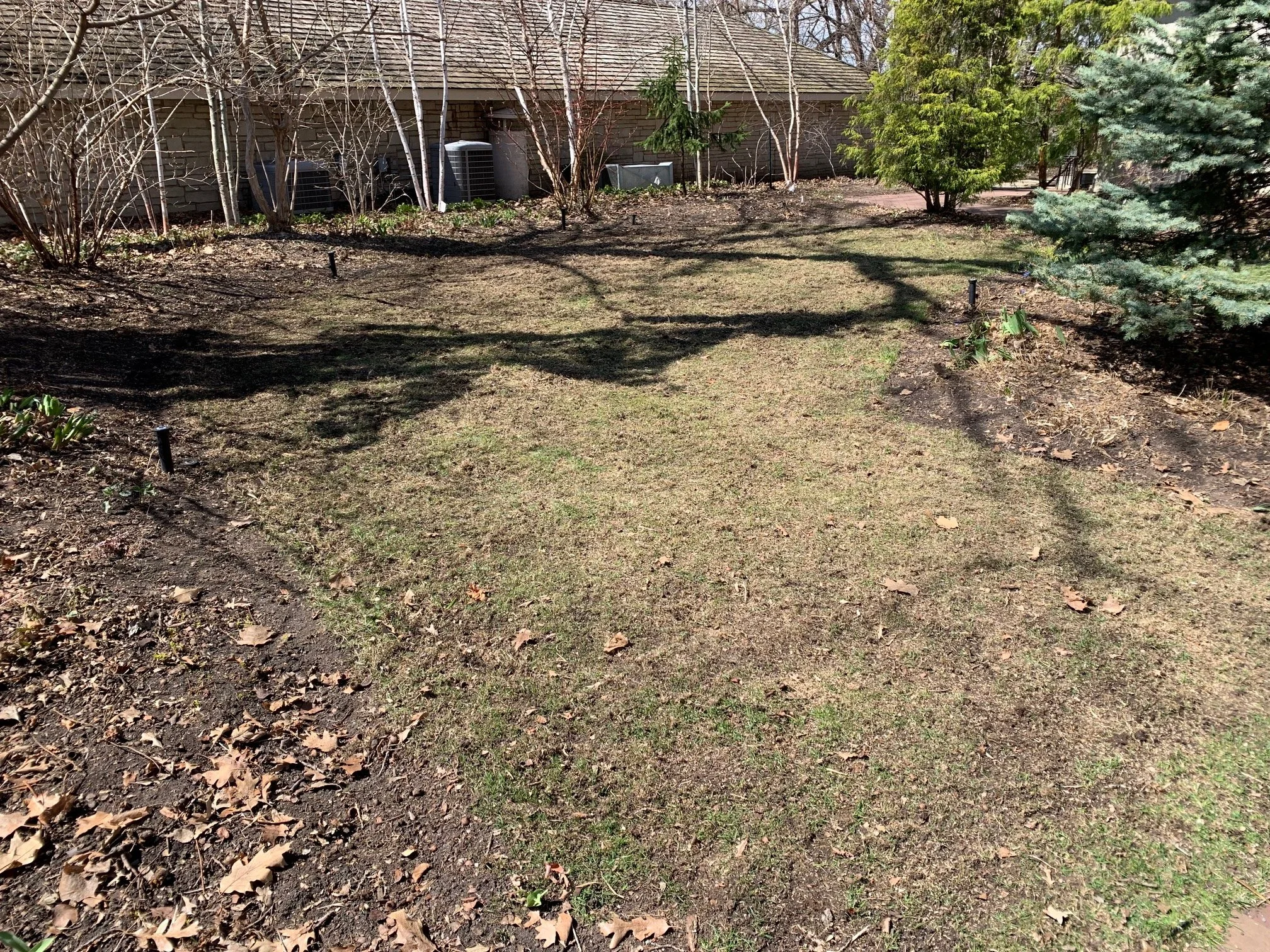 We begin each season by doing garden cleanups for our steadfast clients. In this garden, we were pleased to observe that the tree protectors and chicken wire we installed last fall prevented damage by rabbits to shrubs and trees.